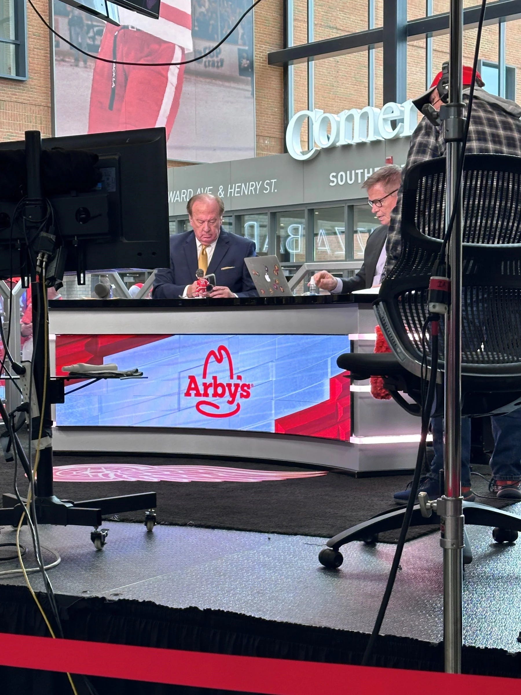 Monday night’s win over the Dallas Stars wasn’t just the last home game of the regular season for the Detroit Red Wings. It was also the last game at Little Caesars Arena in the illustrious career of beloved Detroit sports broadcaster John Keating. After Detroit secured the win, the Red Wings gathered at center ice to salute the LCA crowd for the final time on the season, then paid direct tribute to Keating, looking up to his perch from the FanDuel Sports Network Detroit set as he looked on.